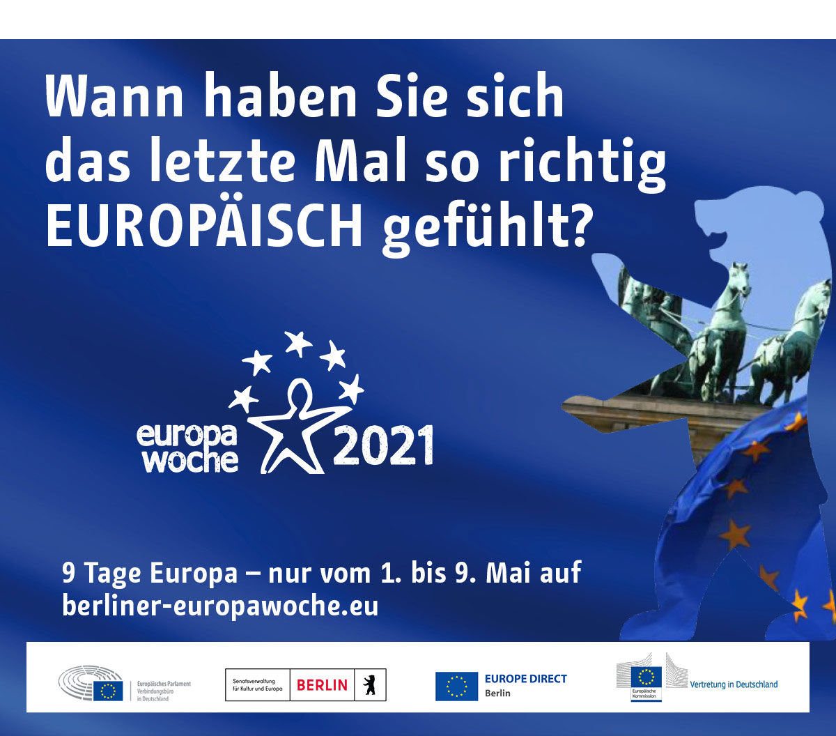 Vom 1. bis 9. Mai finden Sie hier täglich neue Musikvideos, Podcasts und Poetry Slams, die Sie bestimmt noch nicht kennen, Interviews und 1.000 Infos rund um die Themen Europa, Demokratie und Ehrenamt. Wir laden Sie zu Live-Talks über Klimaschutz, Digitalisierung und Europa ein.