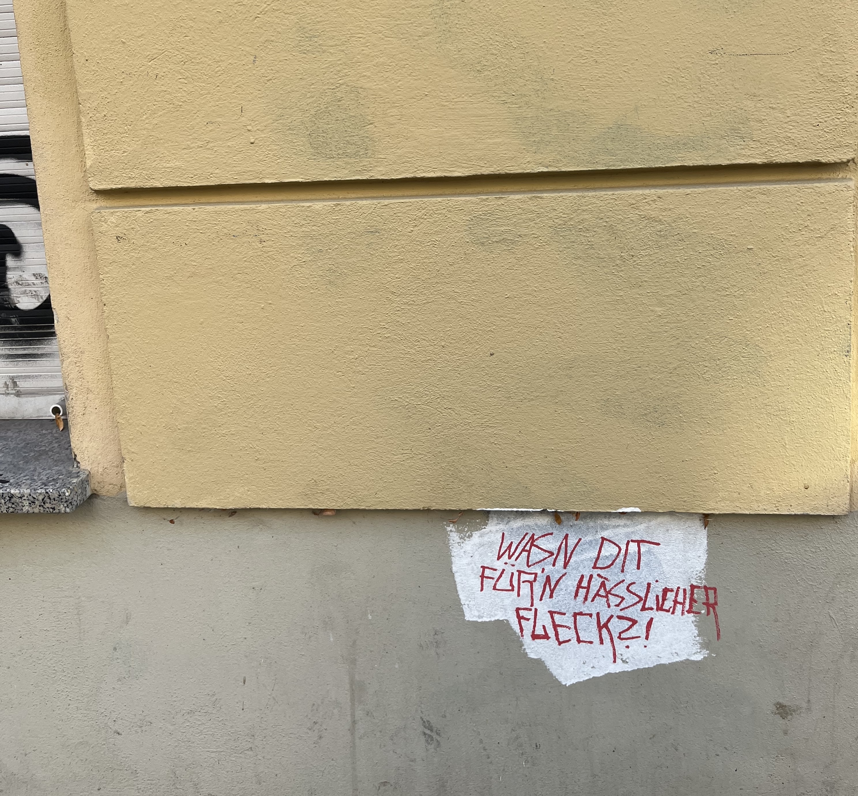 Eine Frage, die man sich beim Anblick dieser Wand durchaus stellen darf. Entdeckt und fotografiert von Checkpoint-Leser Stephan Rechlin in der Lychener Straße in Prenzlauer Berg. Schicken auch Sie uns Ihre schönsten, kuriosesten und überraschendsten Berlin-Momente an checkpoint@tagesspiegel.de und nehmen an unserem Kiekste-Fotowettbewerb in Kooperation mit DASBILD.BERLIN teil.