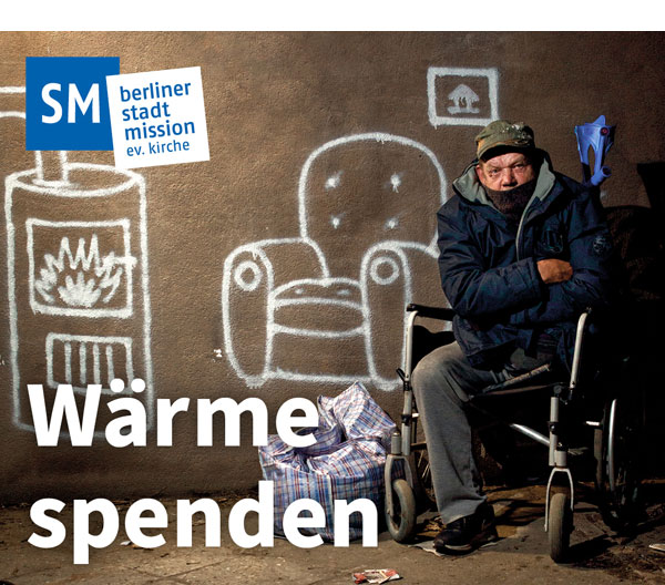 Mit der Kältehilfe der Berliner Stadtmission Leben retten: Lassen Sie uns in der Adventszeit jene Menschen nicht vergessen, die auf der Straße frieren. Jetzt spenden und Wärme in die Stadt bringen!