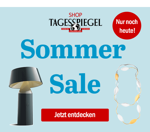 Letzte Chance: Großer Sommer Sale mit bis zu 60% Rabatt im Tagesspiegel-Shop! Entdecken Sie nur noch heute viele unserer Bestseller zu einmalig günstigen Preisen.