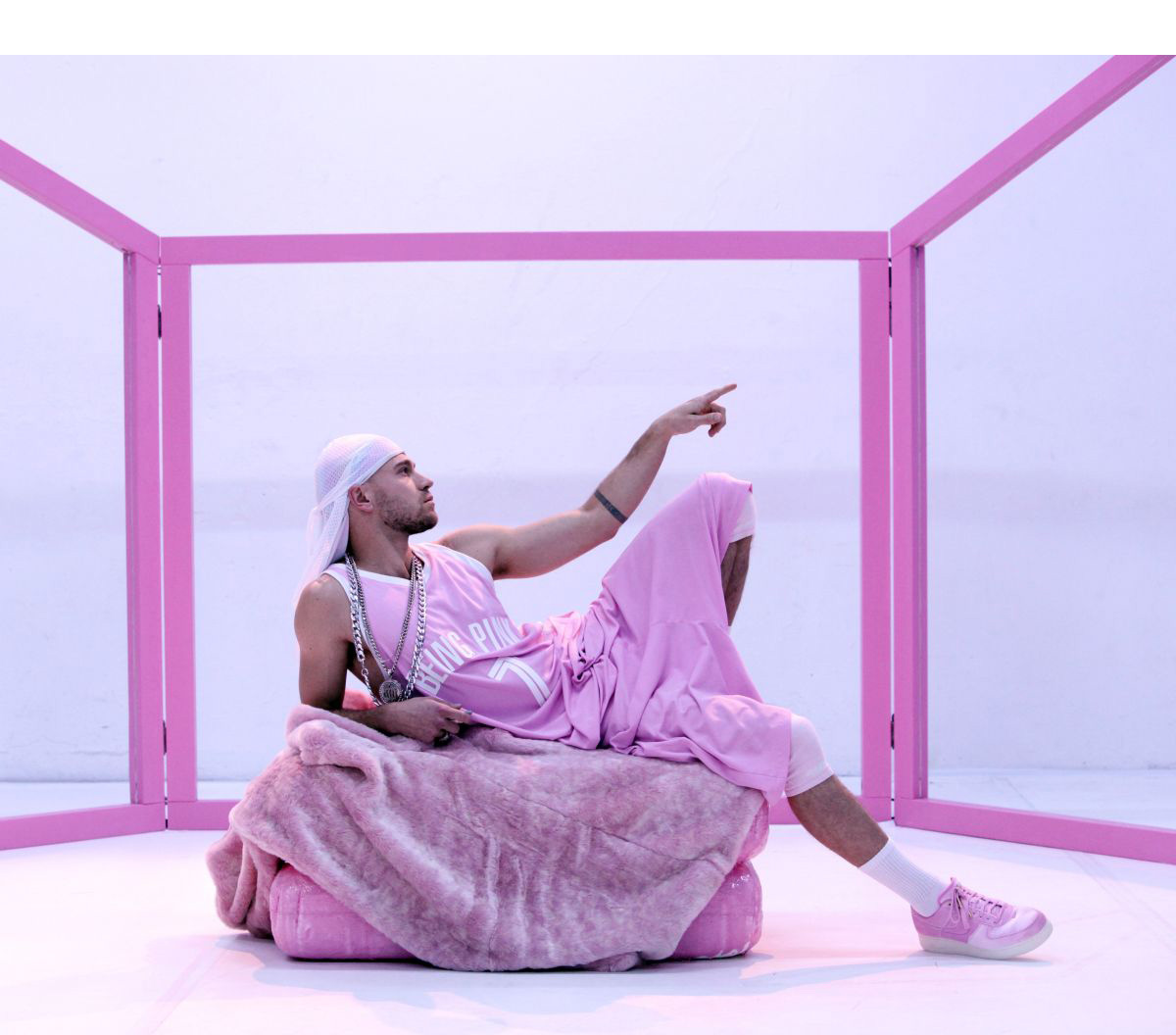 Gangstas, Pimps und Hoes: Die US-Rap-Welt ist durchtränkt von Bildern übersteigerter Männlichkeit. Joana Tischkau macht in der Performance BEING PINK AIN’T EASY die Fragilität sozialer Konstruktionen wie Race und Geschlecht sichtbar. Die Filmfassung ist vom 20.5. bis 3.6. online zu sehen auf www.sophiensaele.com.